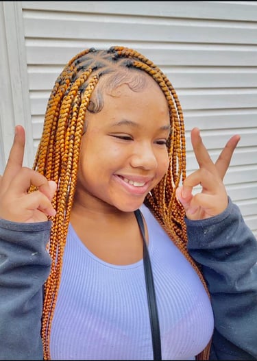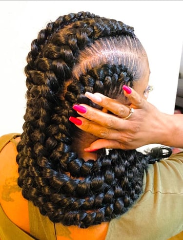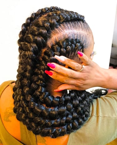 Visit us at She's Happy Braids for professional African braiding services. Book your appointment today and experience our elegant atmosphere.